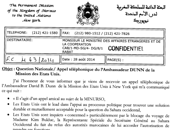 En dépit de ces critiques, le Maroc ne s'empêchera pas de demander audience à Kim Bolduc dont il remettait pourtant en cause la désignation à la tête de la Minurso. Dans un autre document, relatif à Navy Pillay, on voit à quel point Rabat cherche les points faibles de ses partenaires afin de tenter de s'en servir et de les retourner en sa faveur dans la question du Sahara Occidental et des droits de l'homme.