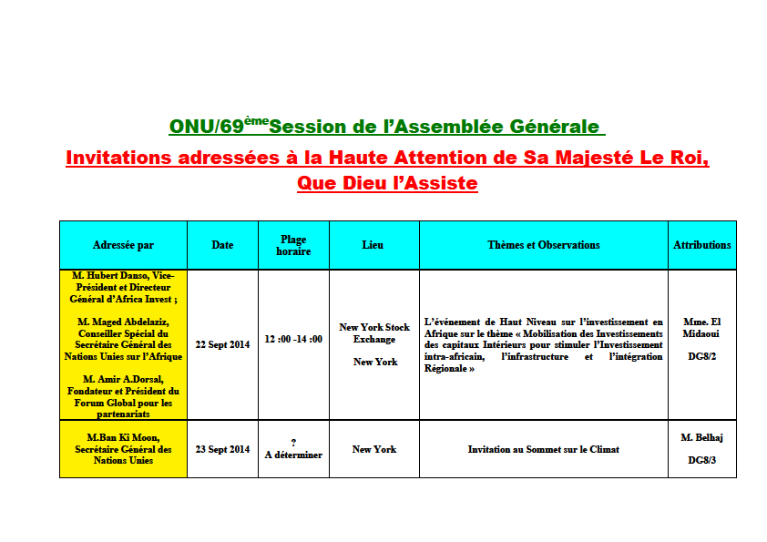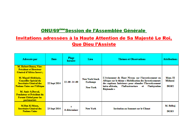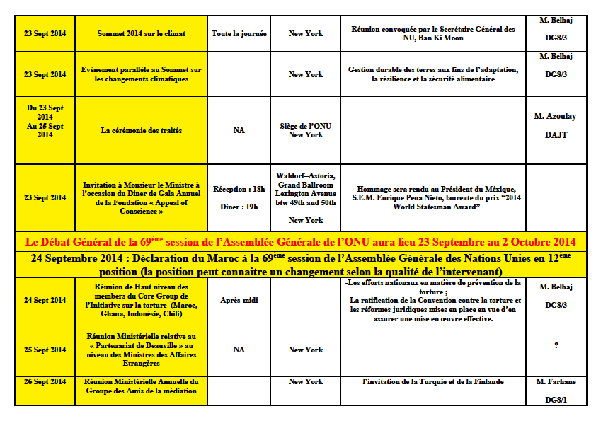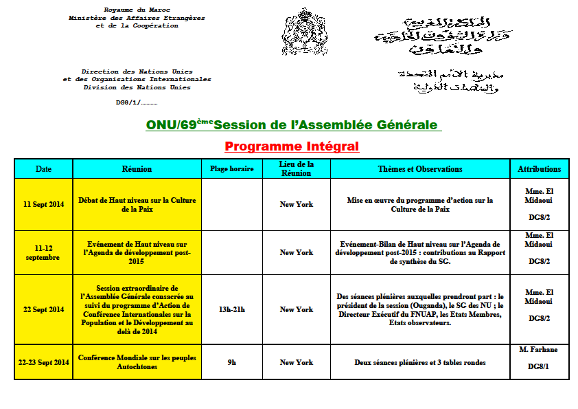Moroccoleaks : ONU / 69ème Session de l’Assemblée Générale : Programme Intégral