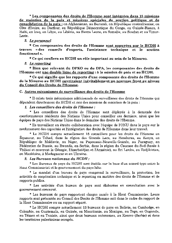 Hilale rappelle que « les composantes des droits de l’homme sont intégrées dans 15 missions de maintient de la paix et missions spéciales de soutien politique et de consolidation de la paix : en Afghanistan, au Burundi, en Répulique Centrafricaine, en côte d’Ivoire, au Darfour, en RDC, en Guinée Bissau, à Haiti, en Iraq, en Libye, au Libéria, au Sierra Leone, en somalie, au Doudan et au Timor-Leste ».