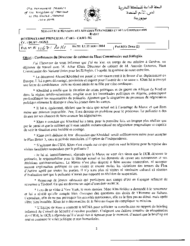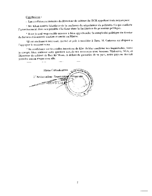 Il faisait semblant de se livrer à des « confidences amicales » en apportant des informations qui n’étaient que des grossiers mensonges à l’instar de ce qu’il a raconté sur Mhamed Khadad, le coordinateur du Polisario avec la MINURSO. C’est lui qui a qualifié M. Ross d’alcoolique.