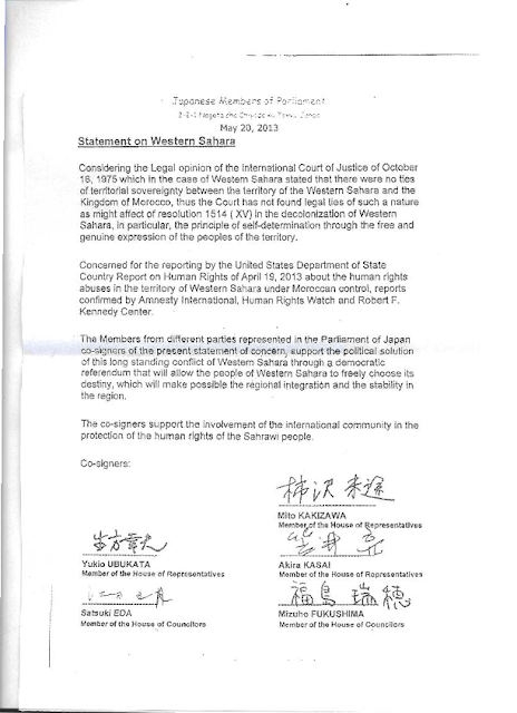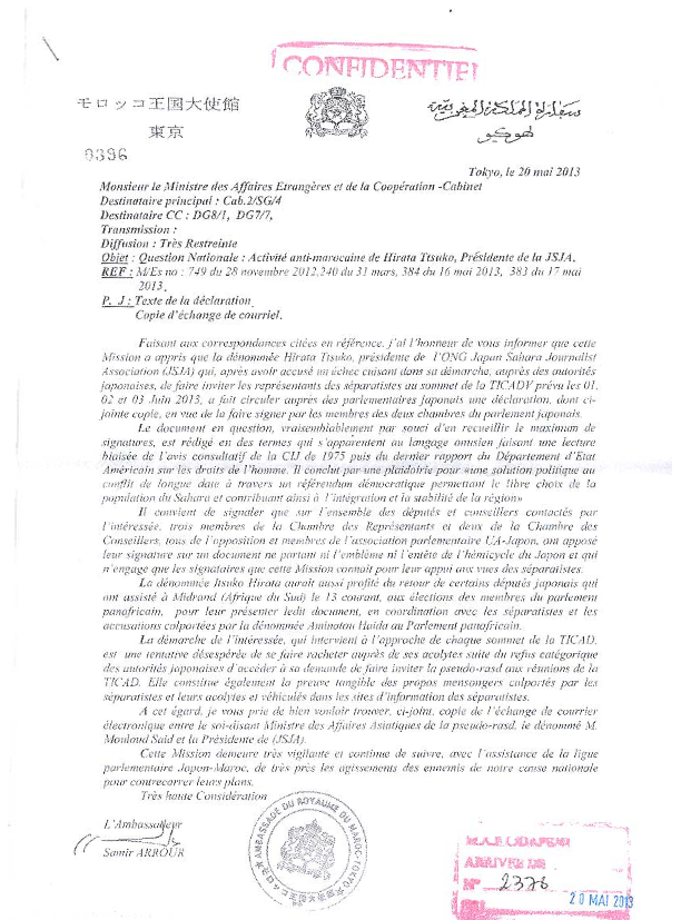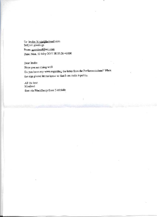 Voici un email qu’il a envoyé à la japonaise Hirata Itsuko, présidente de l’Association Japonaise de solidarité avec le peuple sahraoui.