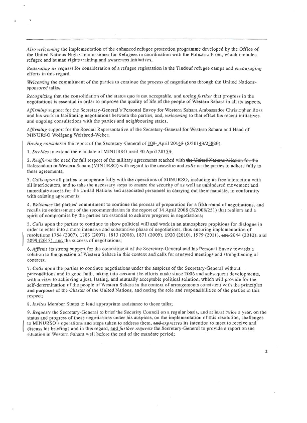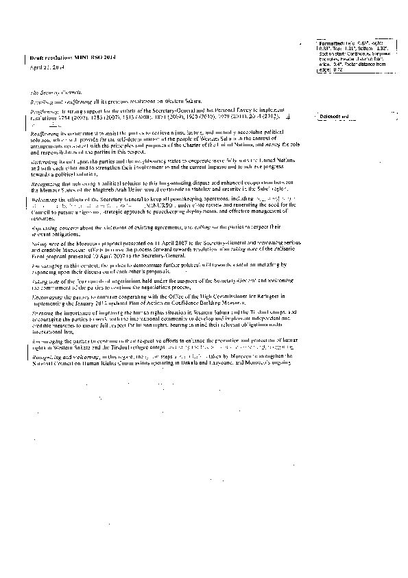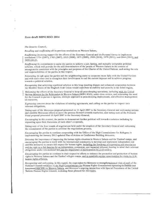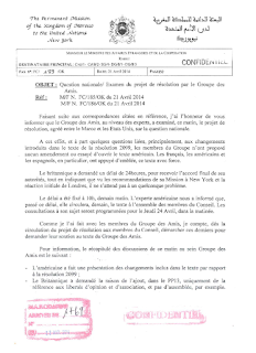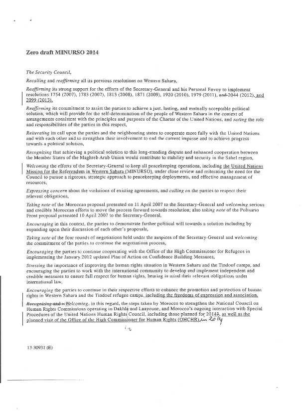 – Projet de résolution initial des Etats-Unis, 10 avril 2014, Mohamed Loulichki