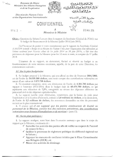 – Lecture dans le rapport du SG sur le budget de financement de la MINURSO (juillet 2014/2015) fait par Azzeddine Farhane, directions des Nations Unies et des organisations internationales