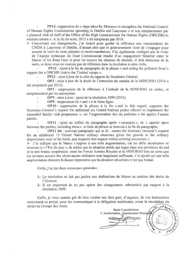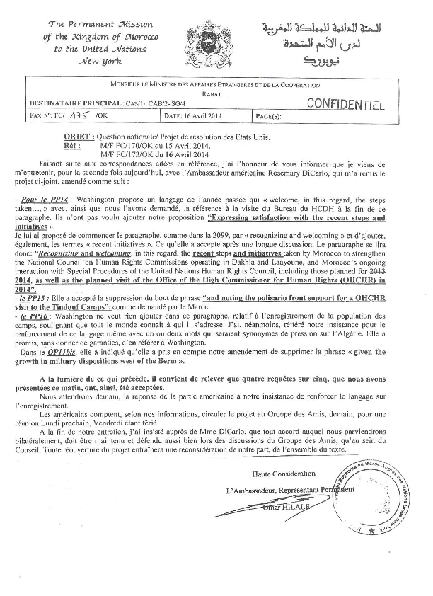 – Projet de résolution des Etats-Unis, Omar Hilale, 16 avril 2014