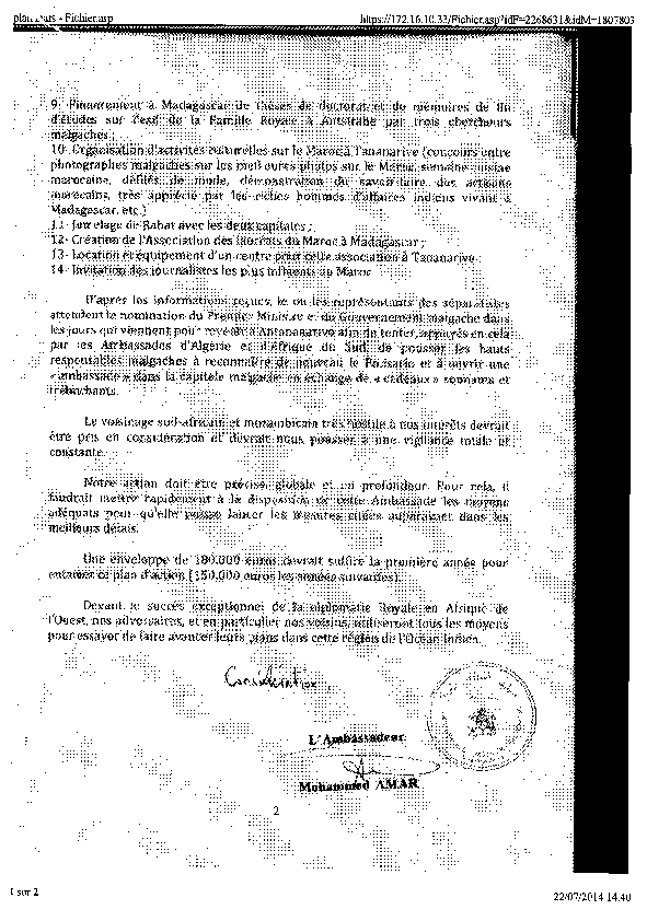 Des émissaires porteurs de Messages Royaux pourraient être dépêchés auprès des Chefs d’Etat des pays amis, en l’occurrence, le Sénégal, la Cote d’Ivoire, le Burkina Faso, le Gabon, la Guinée, la Guinée Equatoriale, La Gambie, le Congo, la RDC, le Benin, du Cap Vert, le Togo, le Niger, le Tchad, Les Comores, Djibouti, de l’Erythrée, le Cameroun, les Seychelles, de la Lybie, de la Tunisie de l’Egypte, du Sierra Léone, du Liberia, du Soudan du Kenya et Rwanda.