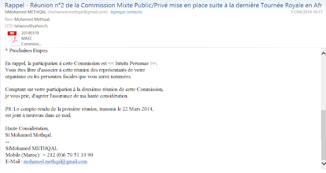  Mardi 22 Avril 2014 à 10h00 au Siège du Ministère des Affaires Etrangères et de la Coopération, à Rabat.