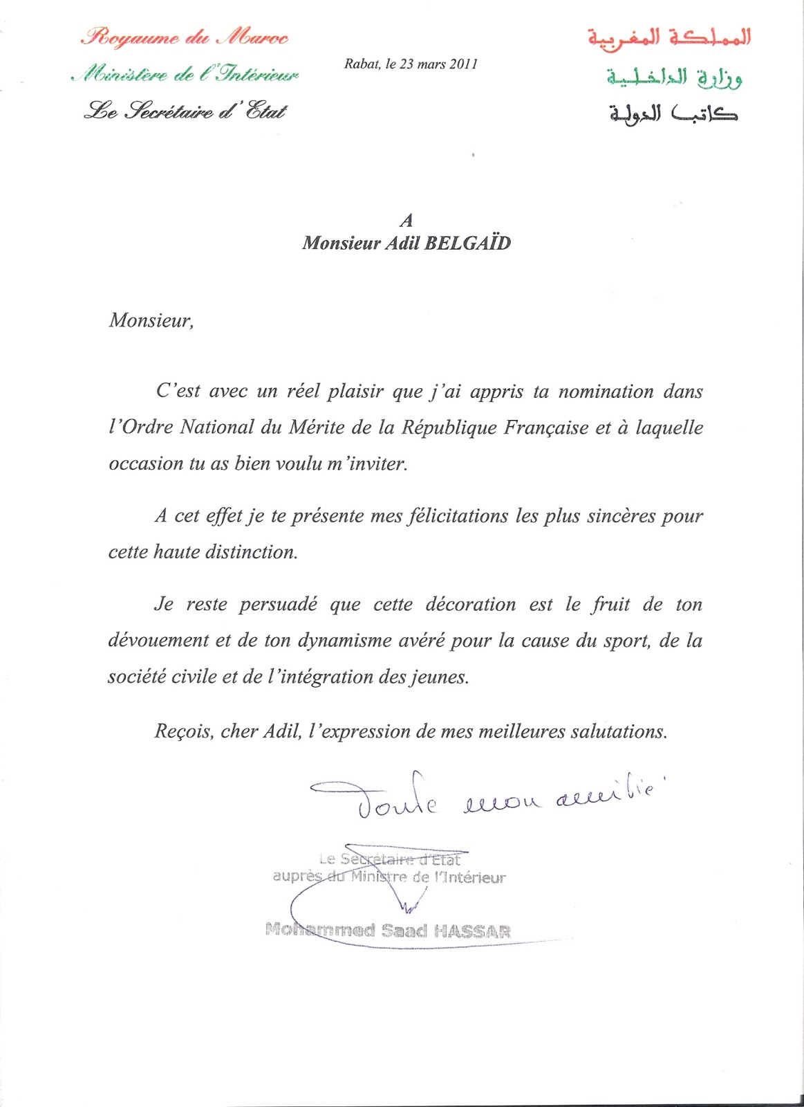 Moroccoleaks : Lettre du Ministre Hassar à Adil Belgaid Posted By: Admin juillet 28, 2016 Visited 1 times, 1 visit(s) today
