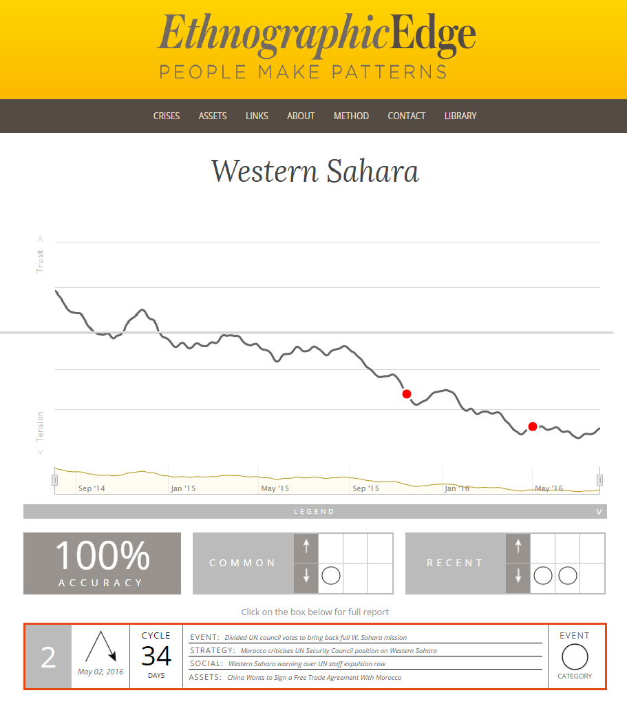 Ethnographic Edge est une start-up, basée à Londres, qui fait de l’analyse prévisionnelle sur l’évolution des crises en Asie et au Moyen-Orient ; et sur la valeurs de multinationales côtées en bourse.