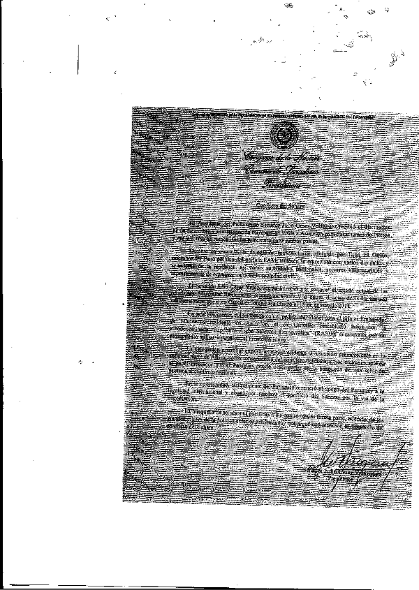 – Il est à signaler qu’en réponse à la Lettre Royale de Félicitations adressée par le Souverain, le 23 avril 2013, au Président paraguayen élu, M. Horacio Cartes Jara, suite à sa victoire à la présidentielle, celui-ci a adressé une lettre de remerciements à Sa Majesté le Roi Mohammed VI, Que Dieu L’assiste.