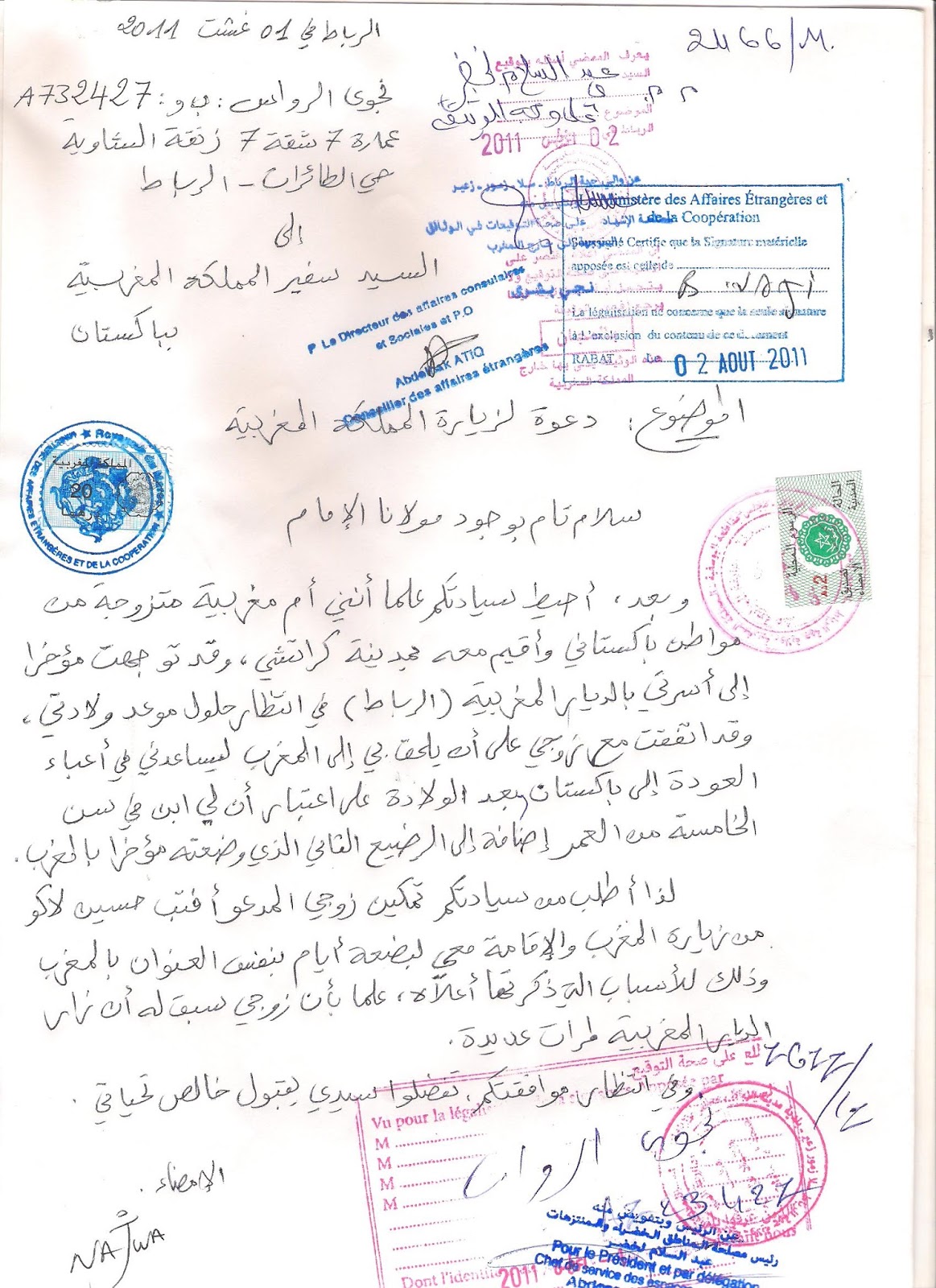 Dans une lettre qui vient d’être révélé par le hacker Chris Coleman, une femme demande aux autorités marocaines de faciliter l’entrée au Maroc de son époux, un pakistanais. Il s’agit, sans doute, d’une opération d’exfiltration de la DGED. Au Pakistan, le terme maghrébin est synonyme de terroriste d’Al Qaida.
