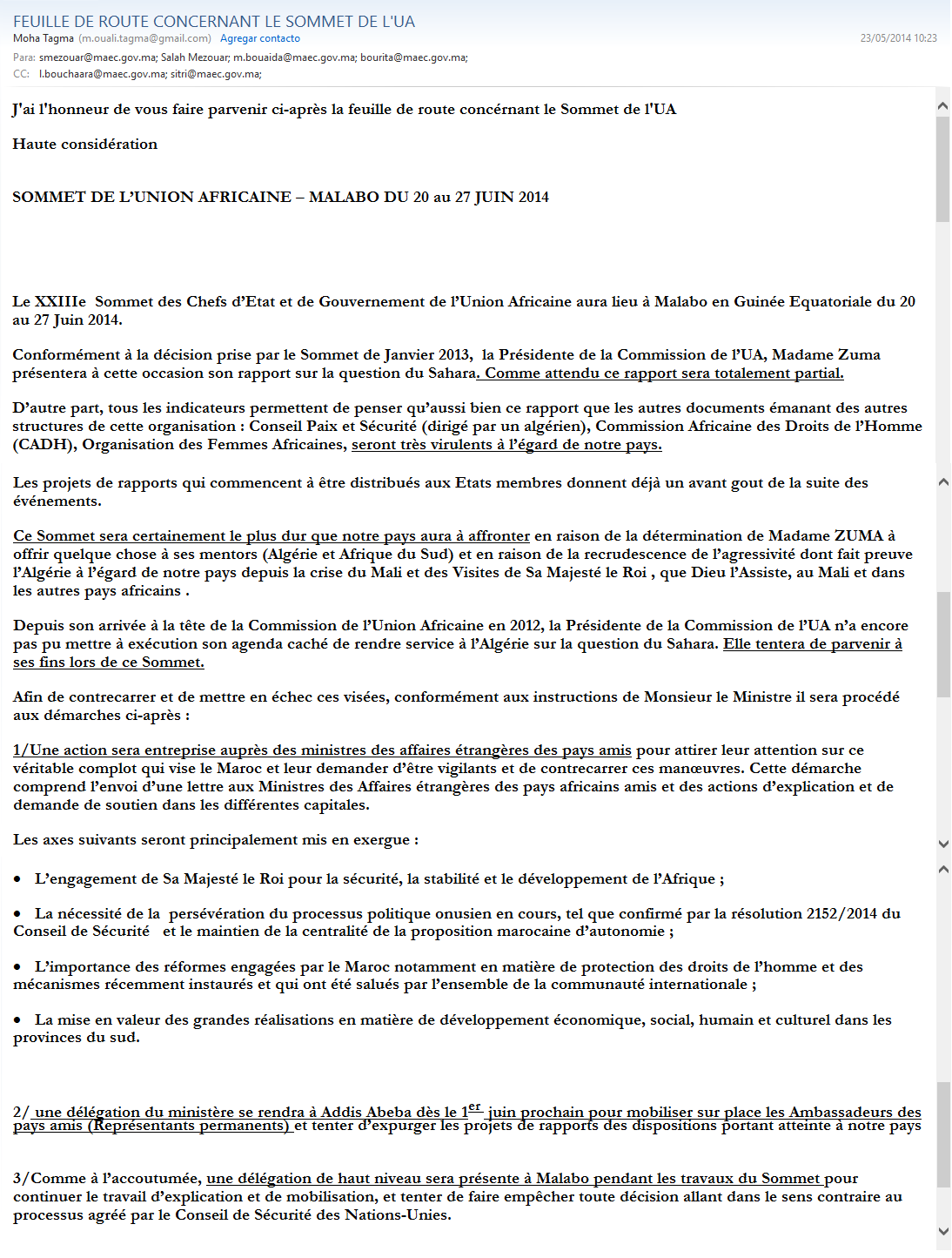 Le Maroc considère que cette sous-représentation en Afrique Australe et Orientale est préjudiciable à ses intérêts tant au plan politique qu’économique. C’est en effet dans ces deux sous-régions que se trouve la totalité des pays qui reconnaissent la République Arabe Sahraoui Démocratique.