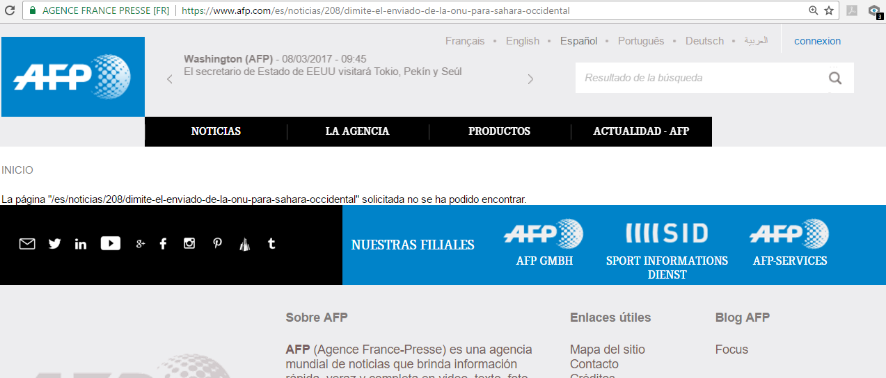 En Effet, l’agence de presse de l’Elysée a dû faire marche arrière et supprimer une nouvelle mise en ligne le 6 mars 2017 selon laquelle, M. Ross a démissionné de son poste d’envoyé pour le Sahara Occidental.
