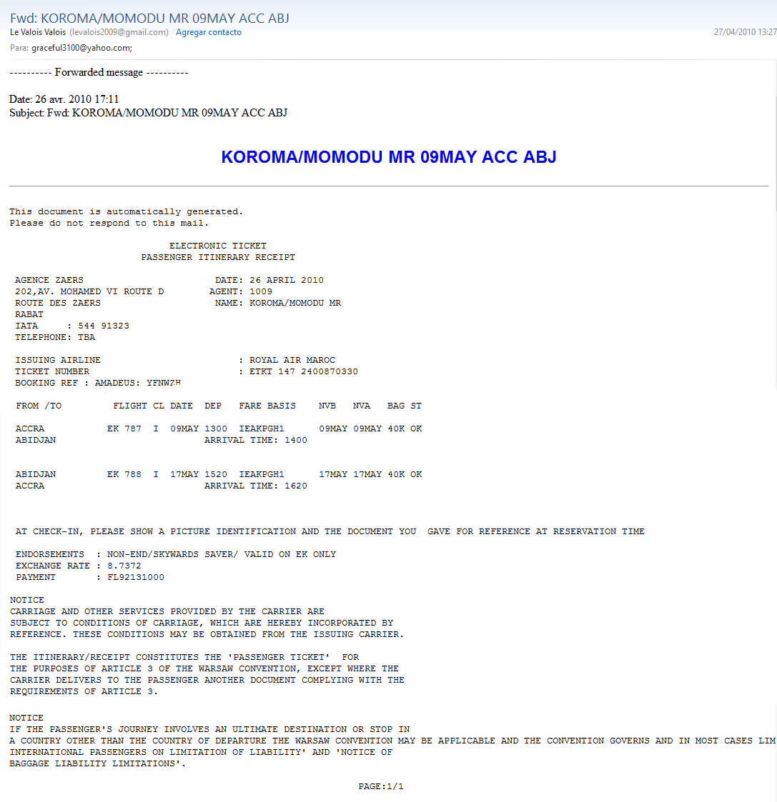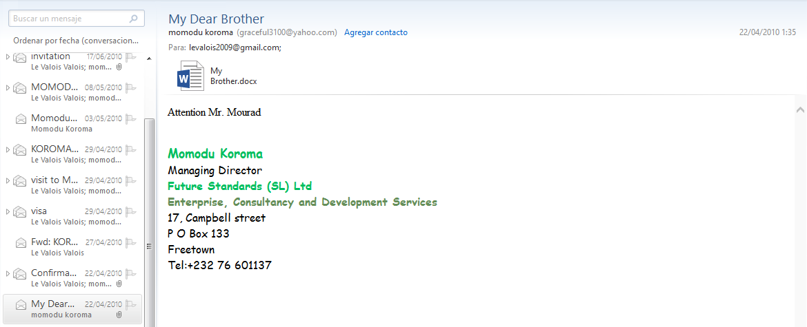 Dans son email du 17 juin 2010, il exprime remercie Mourad pour le traitement reçu et « ses efforts en vue de maintenir des bonnes relations fraternelles et une coopération réciproque ».