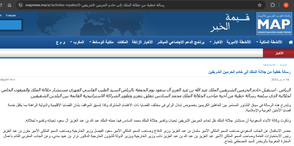 اليوم، بفضل معلومات الهاكر كريس كولمان، يمكن للرأي العام أن يفهم ما تعنيه عبارة « تتعلق بتعزيز الشراكة الاستراتيجية القائمة بين البلدين الشقيقين » المستخدمة في خبر وكالة ماب. فمن بين الوثائق المنشورة من قبل كولمان، هناك رسالة أرسلها سفير المغرب في البحرين في 7 مارس 2012 موجهة إلى الفاسي الفهري، تتضمن مسودة رسالة من الملك محمد السادس إلى ملك السعودية.