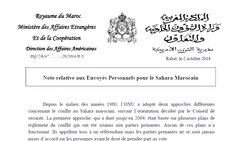 Note relative aux Envoyés Personnels pour le Sahara Marocain
